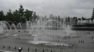 “哇,这喷泉太美了,仿佛置身于仙境!”